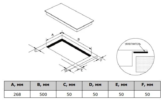 i Характер огранки фаски на внешней стороне варочной панели. Металлические рамки предотвращают забивание монтажных швов крошками и пылью.