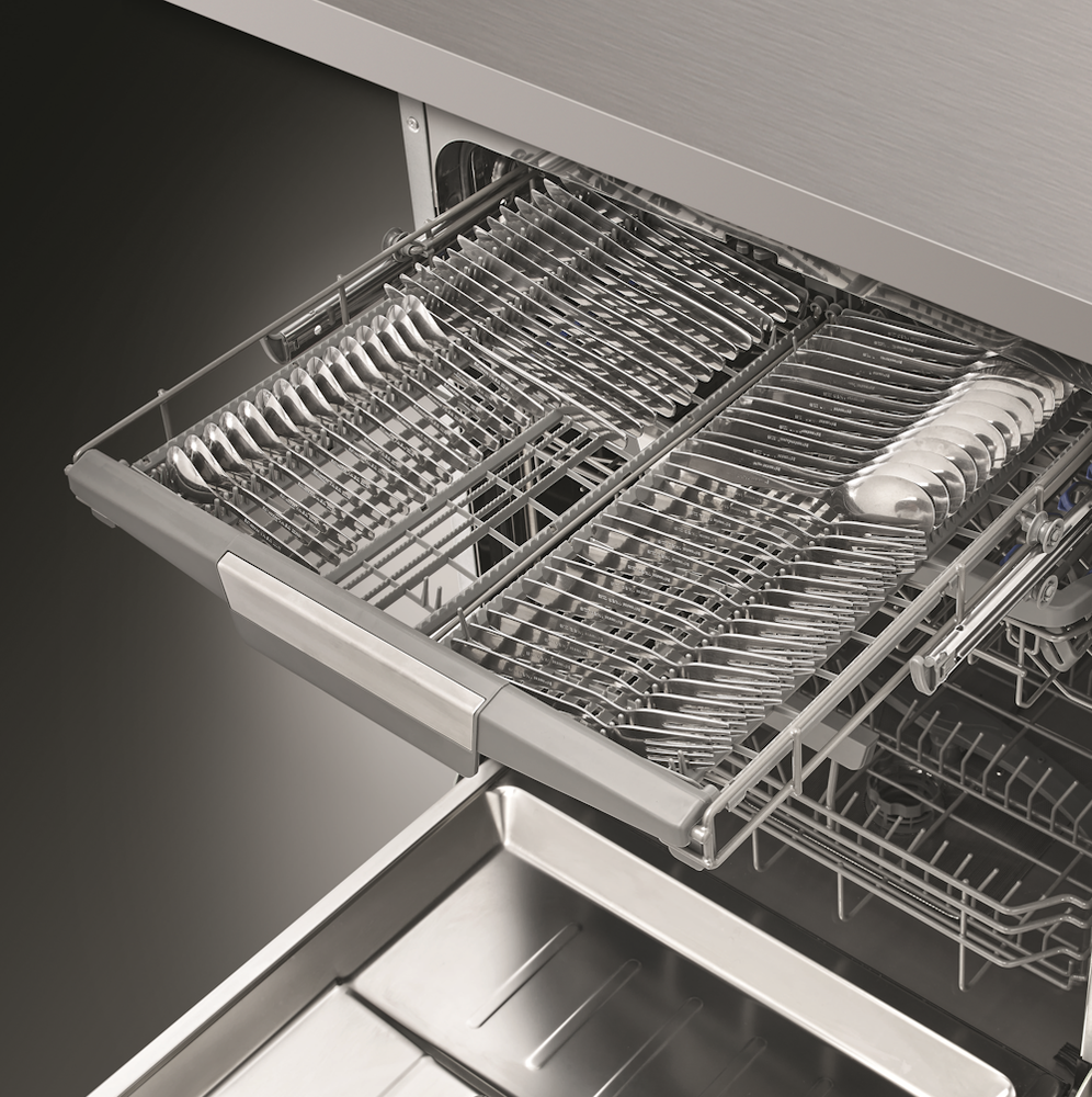i В стандартной посудомоечной машине 3 корзины — 2 для посуды и 1 для столовых приборов. Современные модели могут иметь от 1 до 4 корзин.