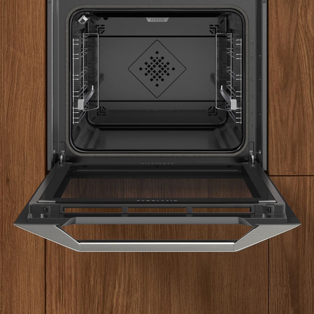 i С этой дополнительной функцией дверцу духового шкафа можно просто немного подтолкнуть и отпустить, она плавно закроется сама.