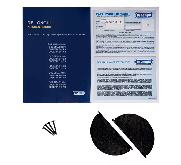Алюминиевый жироулавливающий фильтр, Комплект крепежных деталей, Инструкция, Гарантийный талон |