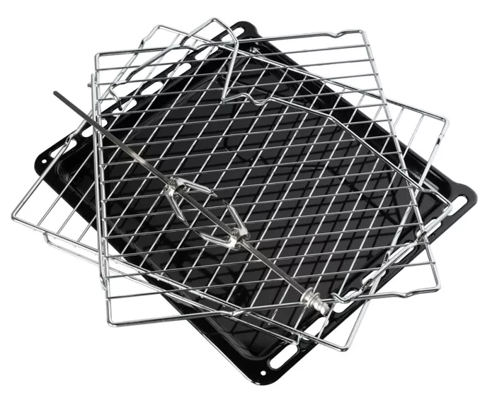 i Выдвижные металлические полозья, которые легко выезжают за пределы камеры духовки вместе с противнем, не давая ему упасть.