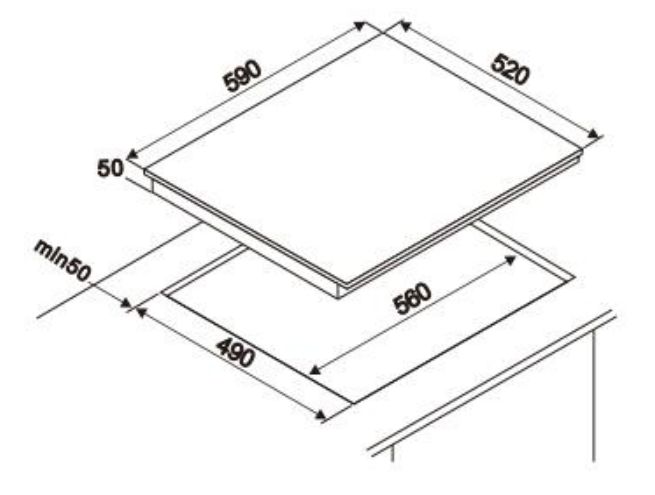 i Характер огранки фаски на внешней стороне варочной панели. Металлические рамки предотвращают забивание монтажных швов крошками и пылью.