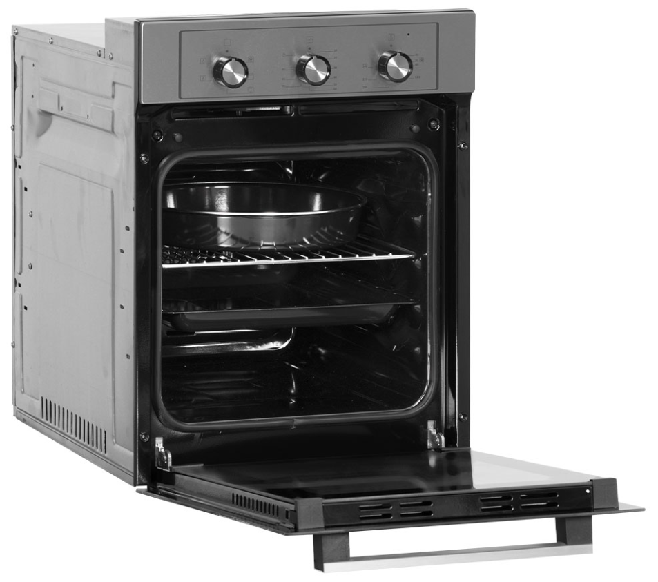 i У духового шкафа может быть газовый или электрический тип питания. Газовые духовки экономичнее, а электрические имеют больше режимов работы.