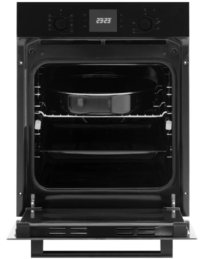 i У духового шкафа может быть газовый или электрический тип питания. Газовые духовки экономичнее, а электрические имеют больше режимов работы.