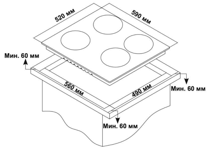 i На варочной поверхности может быть от 2 до 8 электрических конфорок с индукционным нагревом. Для них нужна специальная посуда.