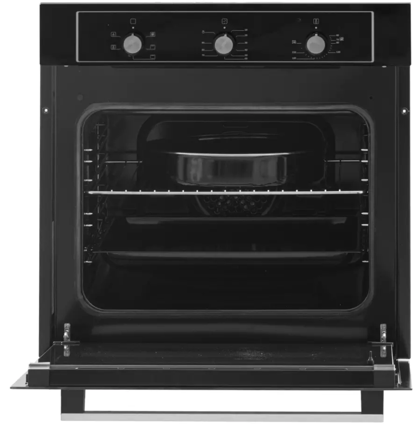 i У духового шкафа может быть газовый или электрический тип питания. Газовые духовки экономичнее, а электрические имеют больше режимов работы.