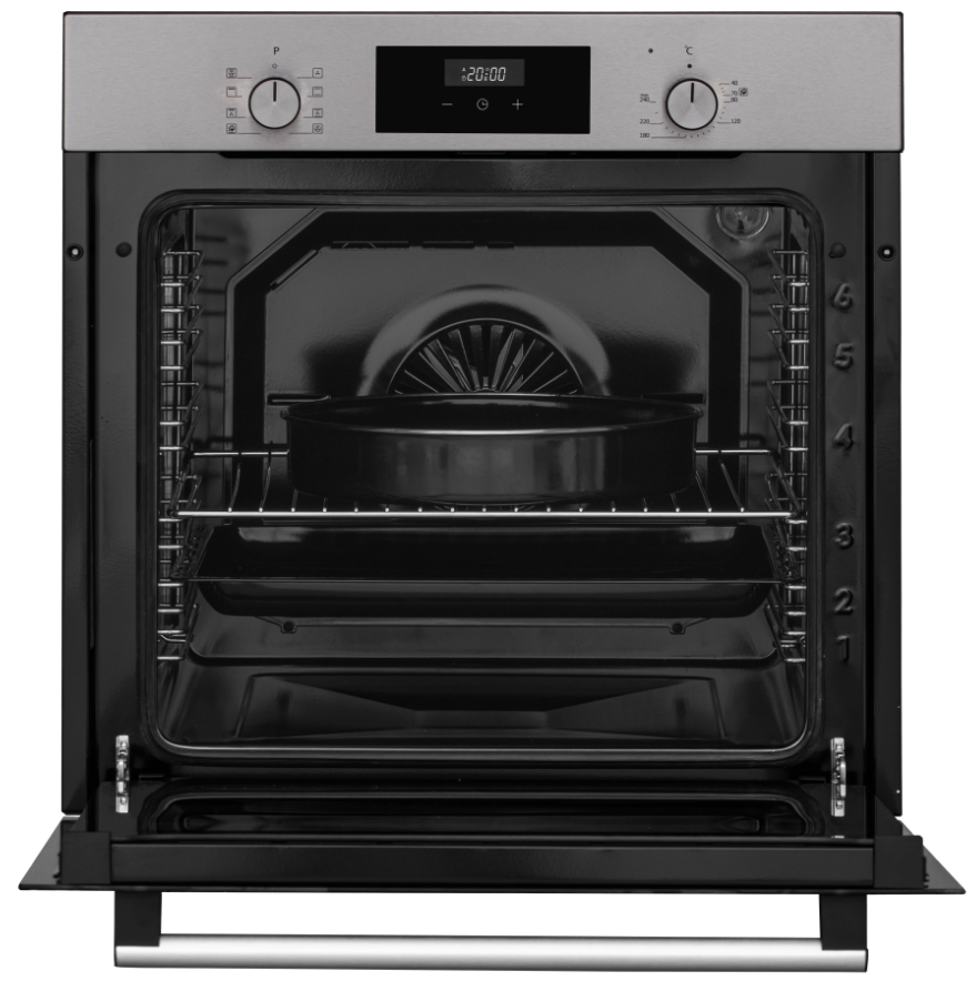 i Предполагает наличие встроенного вентилятора, который обеспечивает равномерное запекание благодаря непрерывной циркуляции горячего воздуха.
