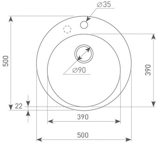 i Расстояние от дна до верхней кромки чаши мойки. Оптимальная глубина — 15-18 см. Чем глубже мойка, тем меньше брызг попадет наружу.