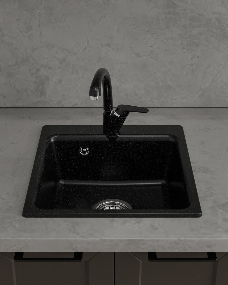 i Основной материал, из которого изготовлен корпус кухонной мойки или смесителя.