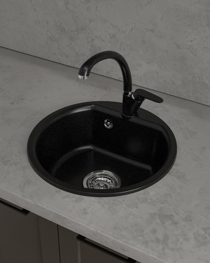 ЭкоМ М-435, мойка, мрамор, черный