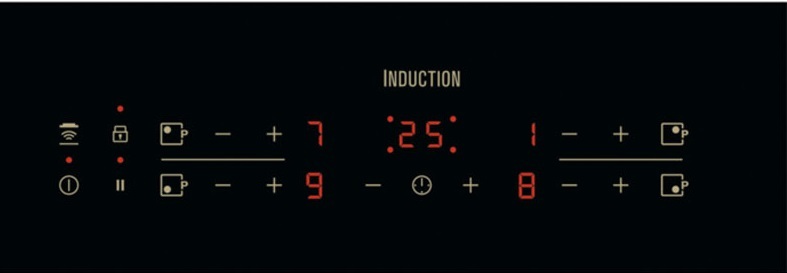 i Расположение панели управления варочной поверхностью относительно конфорок. Если панель расположена сбоку, она будет справа.