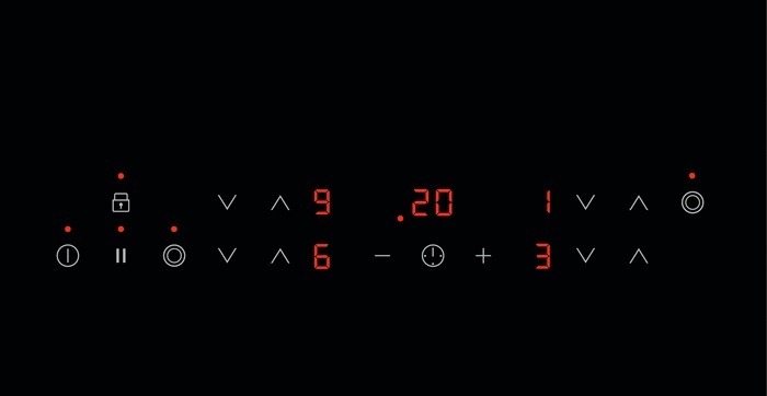 i Расположение панели управления варочной поверхностью относительно конфорок. Если панель расположена сбоку, она будет справа.