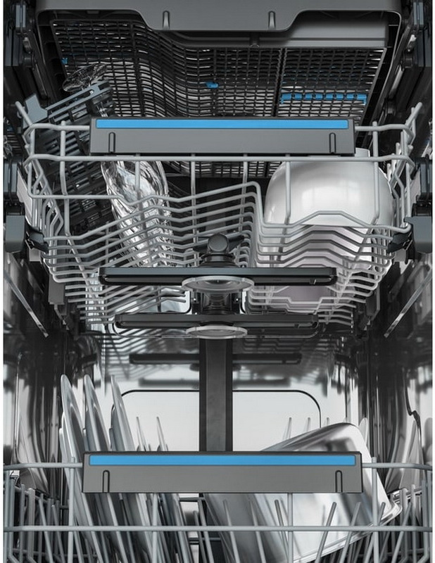 i В стандартной посудомоечной машине 3 корзины — 2 для посуды и 1 для столовых приборов. Современные модели могут иметь от 1 до 4 корзин.