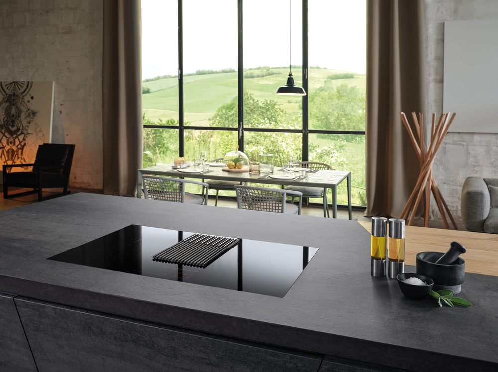 i Модели со встроенной вытяжкой подходят для компактных кухонь. Запахи, пар и дым от готовки полностью поглощаются встроенной вытяжкой.