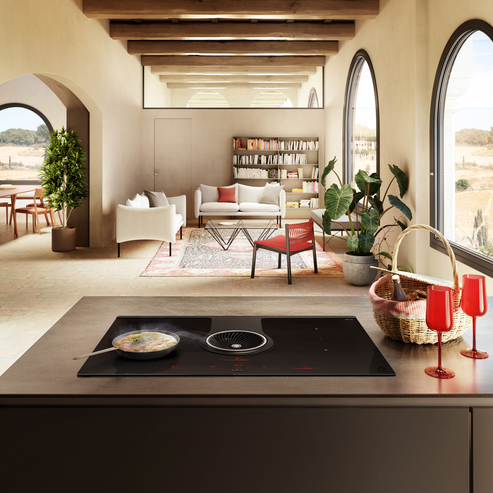 i Модели со встроенной вытяжкой подходят для компактных кухонь. Запахи, пар и дым от готовки полностью поглощаются встроенной вытяжкой.