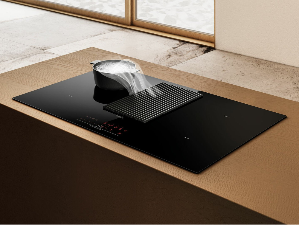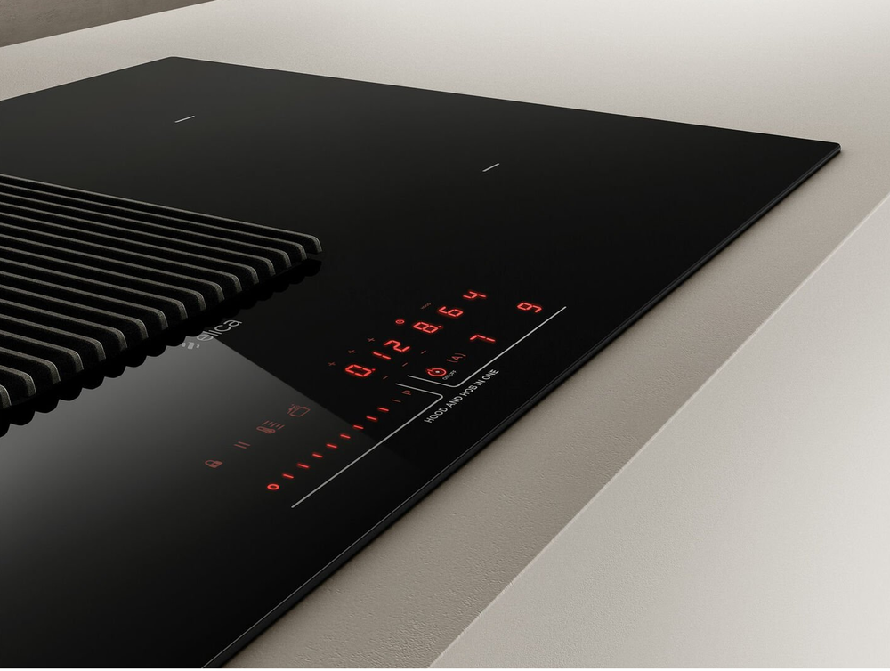 i Модели со встроенной вытяжкой подходят для компактных кухонь. Запахи, пар и дым от готовки полностью поглощаются встроенной вытяжкой.