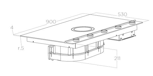 i 									Характер огранки фаски на внешней стороне варочной панели. Металлические рамки предотвращают забивание монтажных швов крошками и пылью.