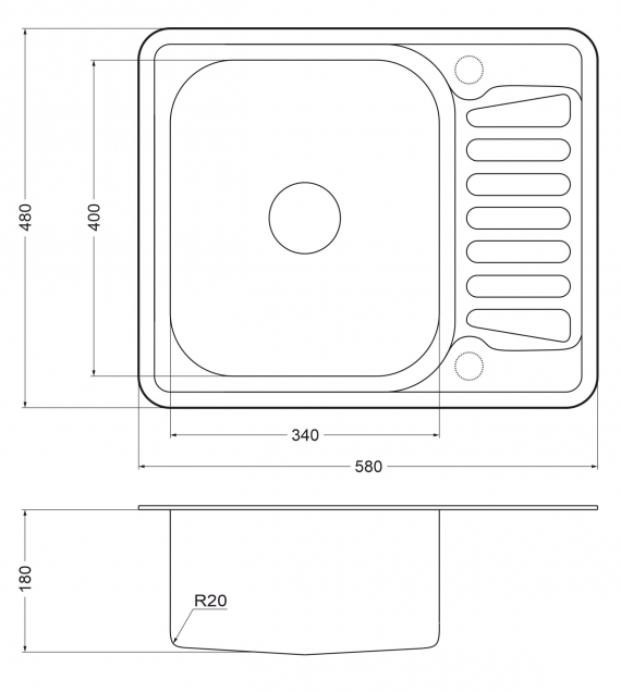 i Расстояние от дна до верхней кромки чаши мойки. Оптимальная глубина — 15-18 см. Чем глубже мойка, тем меньше брызг попадет наружу.