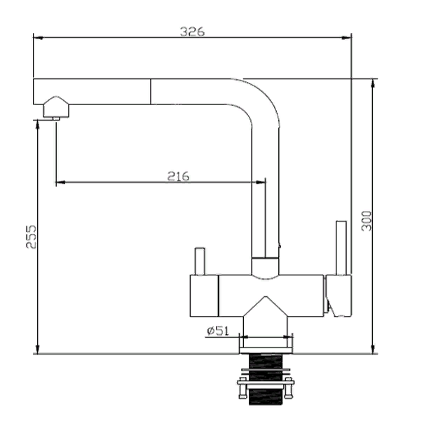 i Встроенная в кран насадка на длинном гибком шланге с металлической оплеткой. Насадки с кнопкой могут переключать обычный излив воды на душ.