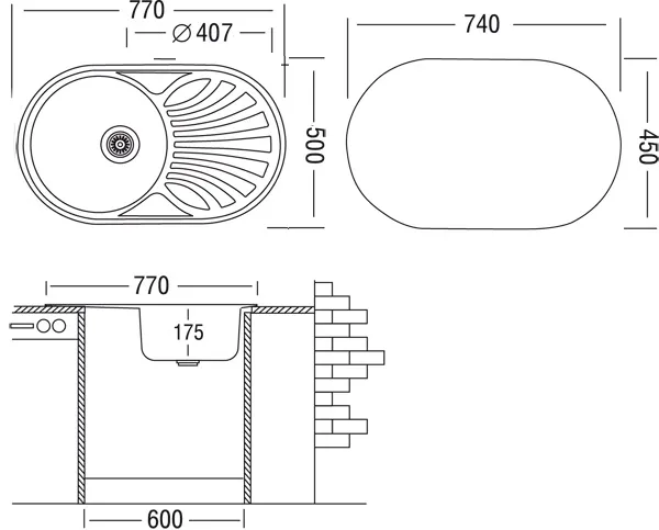 Размеры мойки, мм