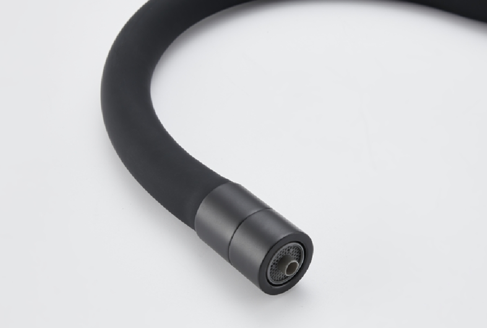 i Встроенная в кран насадка на длинном гибком шланге с металлической оплеткой. Насадки с кнопкой могут переключать обычный излив воды на душ.