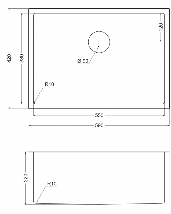 i Расстояние от дна до верхней кромки чаши мойки. Оптимальная глубина — 15-18 см. Чем глубже мойка, тем меньше брызг попадет наружу.