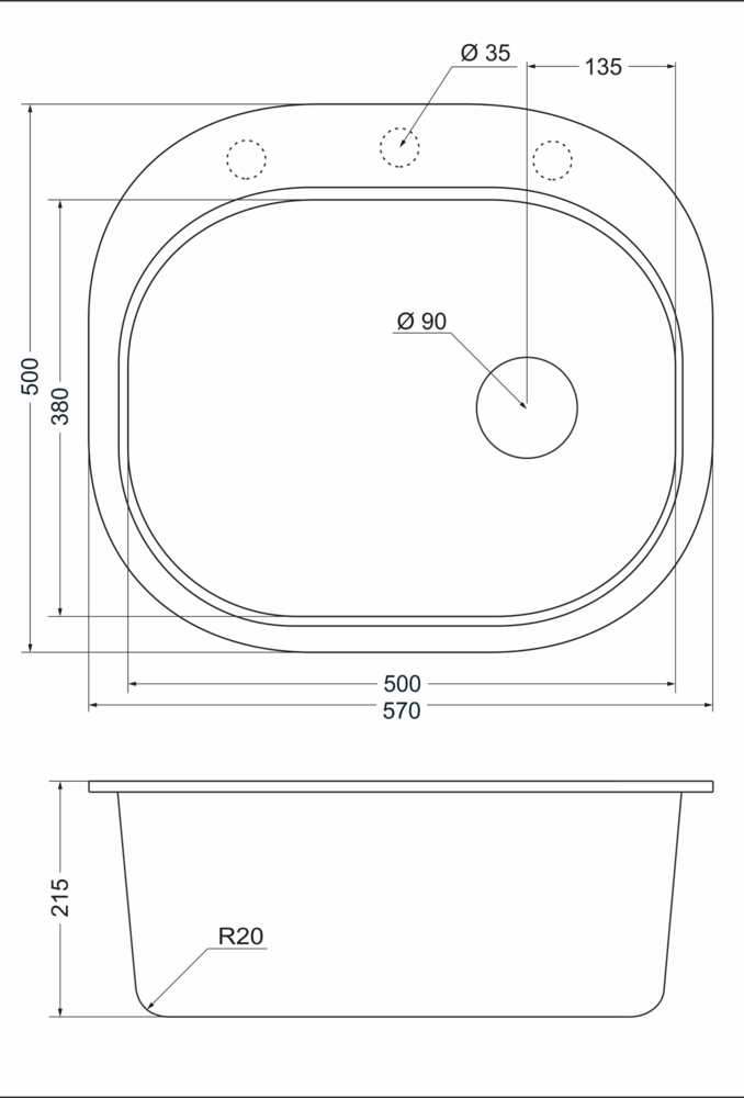 Размеры мойки, мм