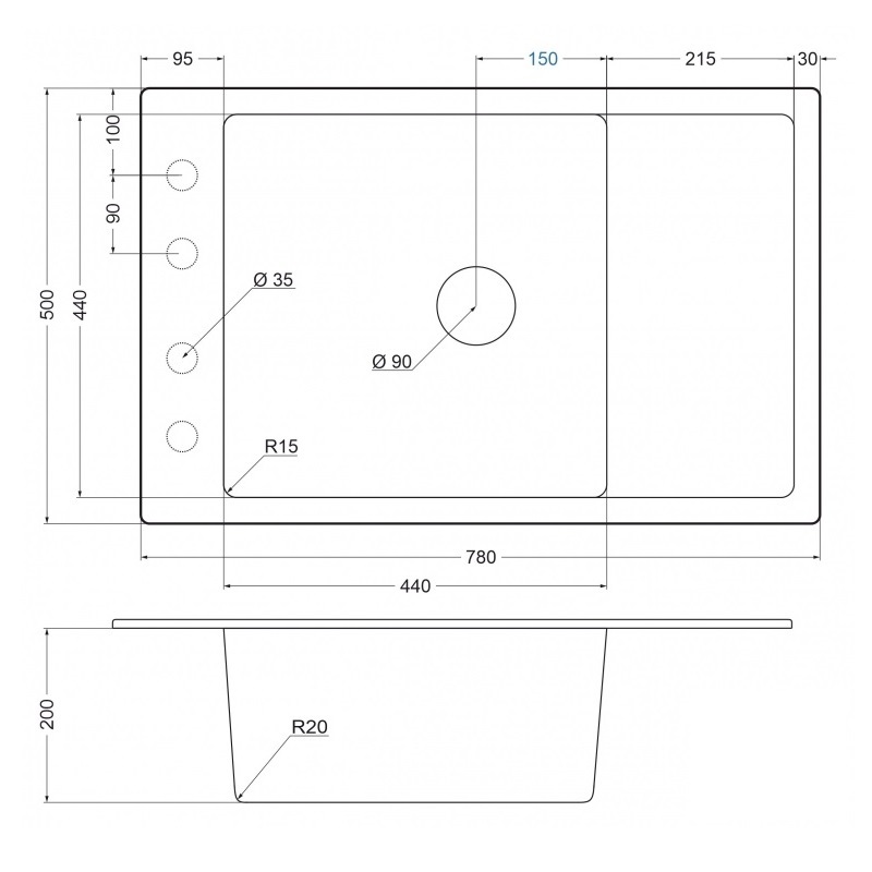 Размеры мойки, мм
