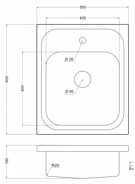 Emar EM-T5060L, мойка, нержавеющая сталь