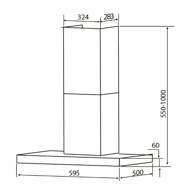 Размеры вытяжки ШхГхВ, мм