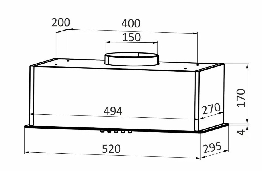 Размеры вытяжки ШхГхВ, мм