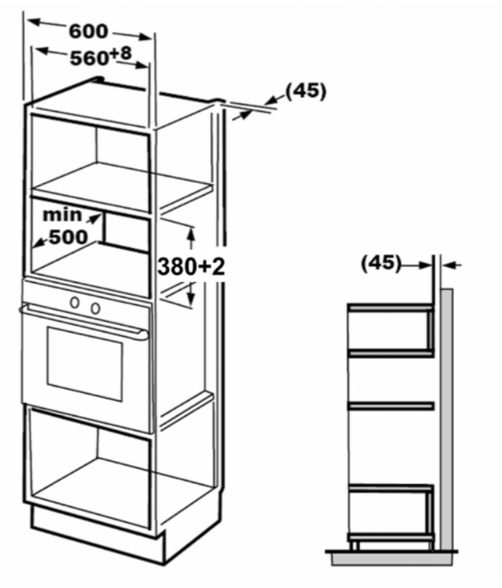 Размеры ниши для встраивания Ш*Г*В
