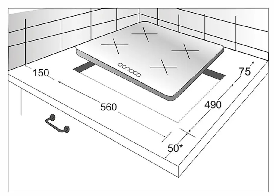 i Расположение панели управления варочной поверхностью относительно конфорок. Если панель расположена сбоку, она будет справа.