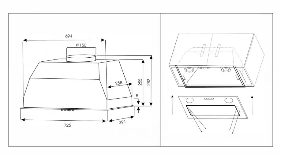 i В зависимости от расположения существует несколько типов установки кухонных вытяжек: встраиваемые, стандартные, пристенные, островные и др.
