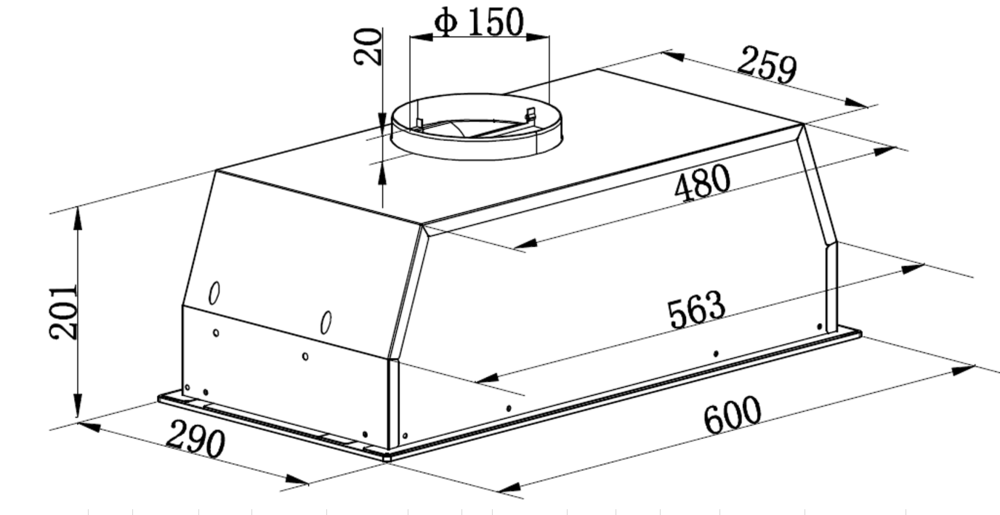 EXITEQ EX-6076 Black встраиваемая вытяжка для шкафа