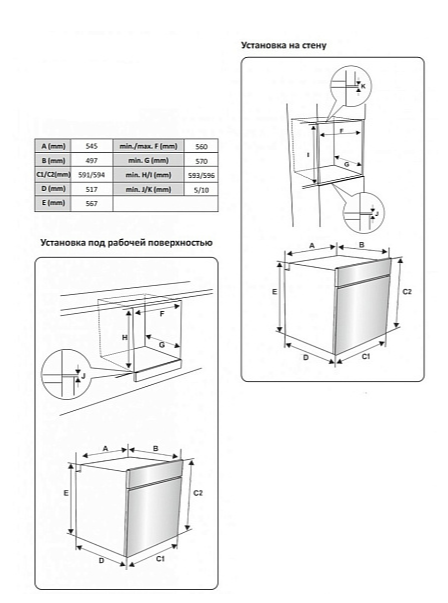 Размеры духового шкафа ШхГхВ, мм