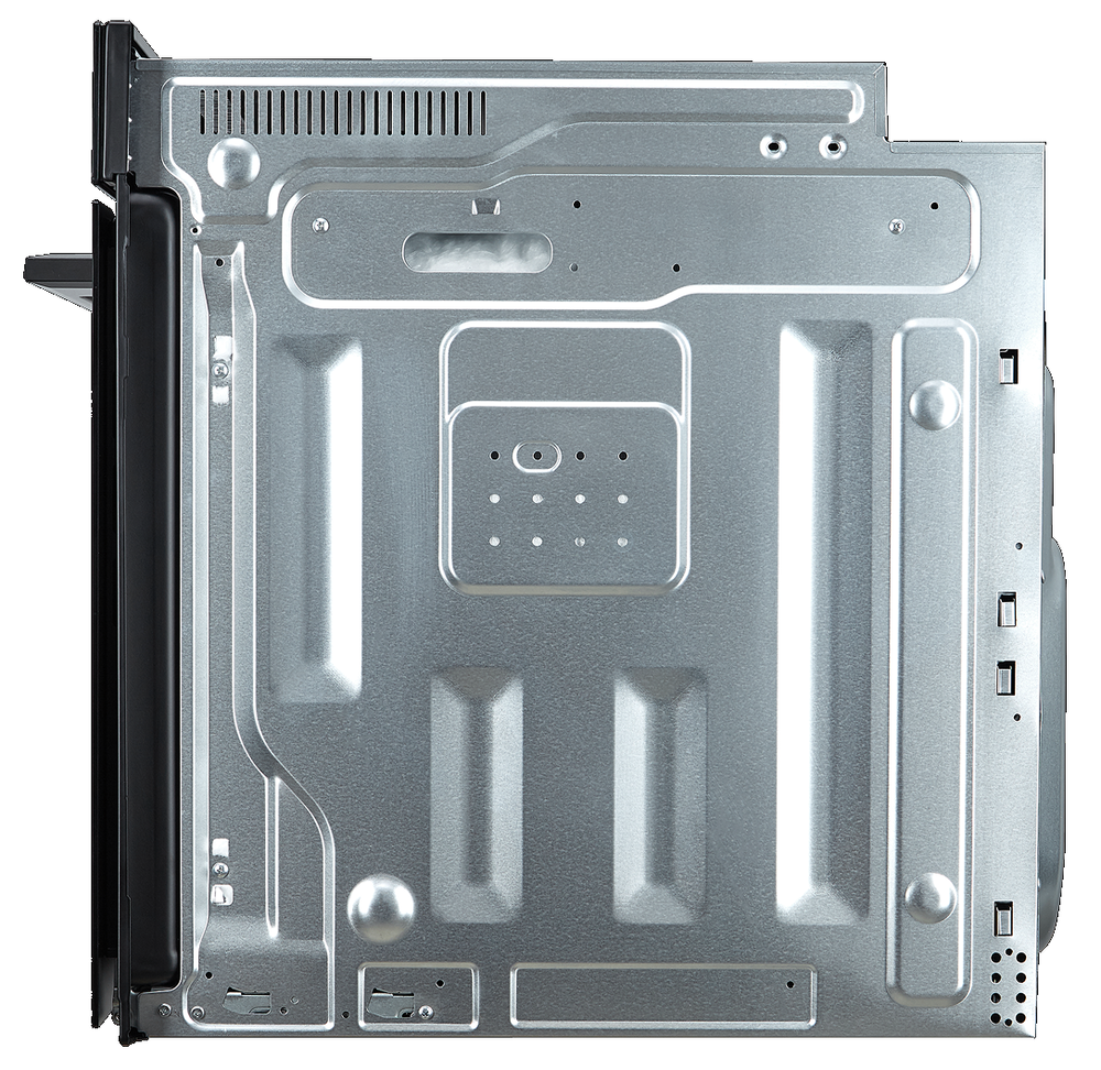 i Выдвижные металлические полозья, которые легко выезжают за пределы камеры духовки вместе с противнем, не давая ему упасть.