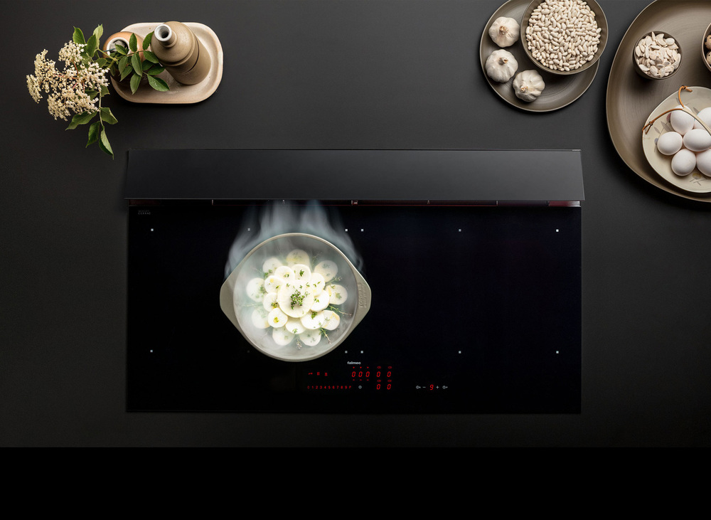 i Модели со встроенной вытяжкой подходят для компактных кухонь. Запахи, пар и дым от готовки полностью поглощаются встроенной вытяжкой.