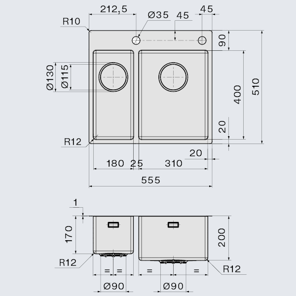 Falmec GARDA 18+31 Steel, мойка, нержавеющая сталь