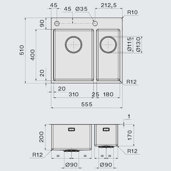 Falmec GARDA 31+18 Steel, мойка, нержавеющая сталь