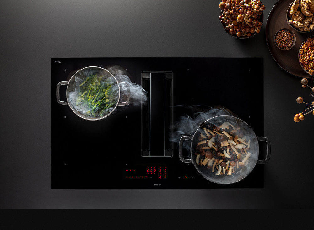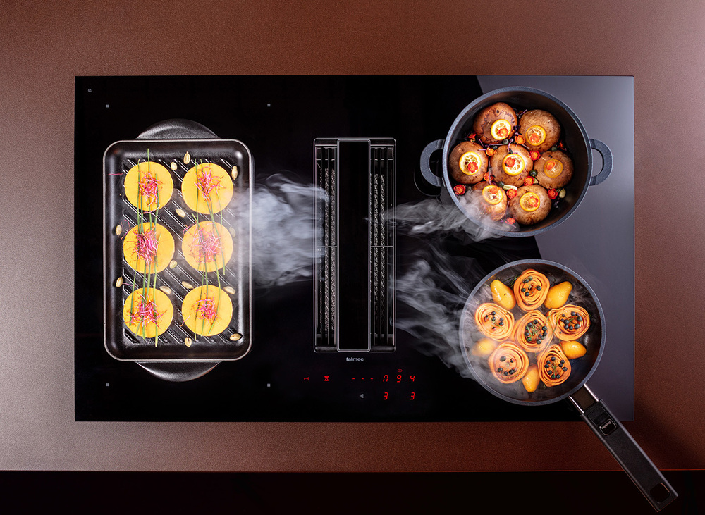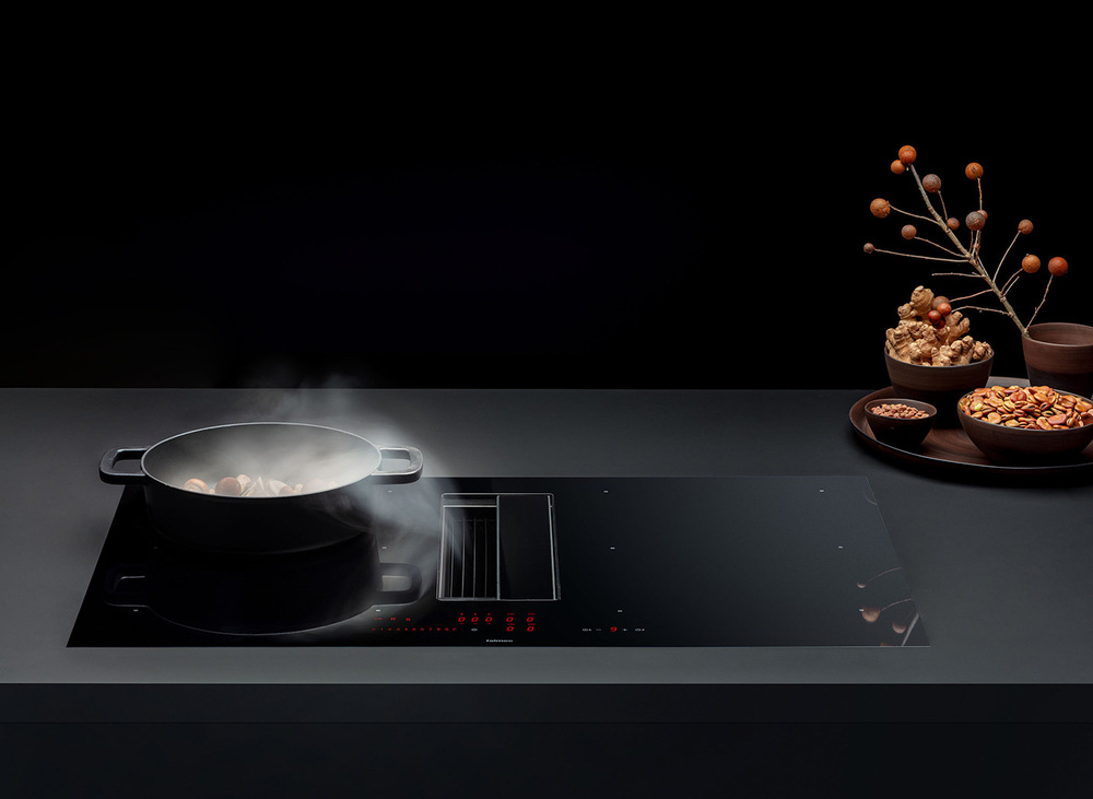 i Модели со встроенной вытяжкой подходят для компактных кухонь. Запахи, пар и дым от готовки полностью поглощаются встроенной вытяжкой.