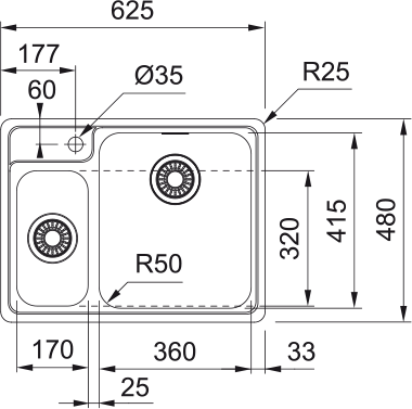 i Наличие и расположение крыла кухонной мойки — слева, справа или с обеих сторон. Крыло оборачиваемой мойки можно расположить с любой стороны.
