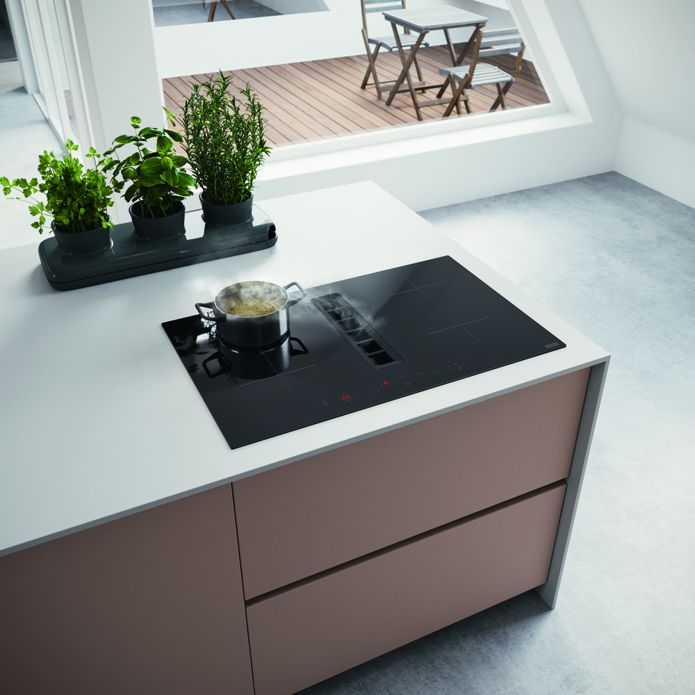 i Модели со встроенной вытяжкой подходят для компактных кухонь. Запахи, пар и дым от готовки полностью поглощаются встроенной вытяжкой.