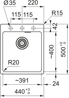 i Расстояние от дна до верхней кромки чаши мойки. Оптимальная глубина — 15-18 см. Чем глубже мойка, тем меньше брызг попадет наружу.
