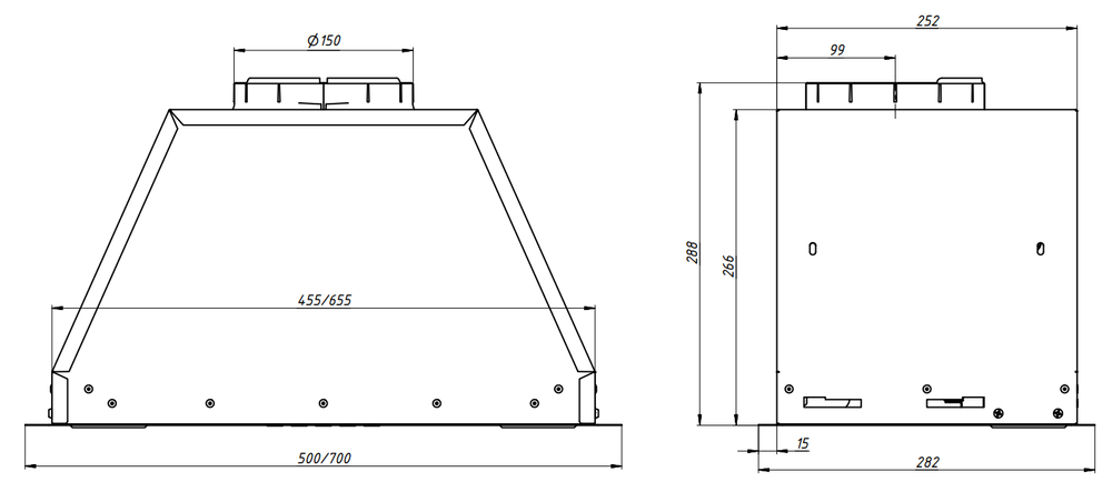 i В зависимости от расположения существует несколько типов установки кухонных вытяжек: встраиваемые, стандартные, пристенные, островные и др.
