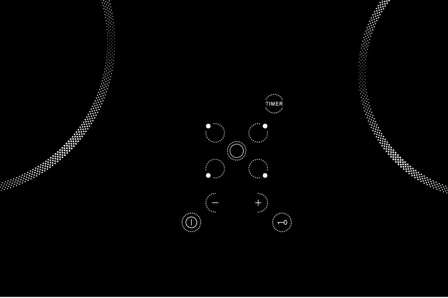 i Расположение панели управления варочной поверхностью относительно конфорок. Если панель расположена сбоку, она будет справа.