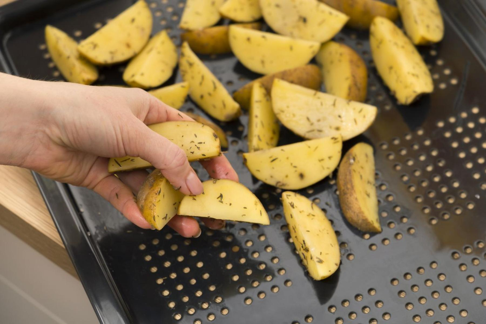 i Выдвижные металлические полозья, которые легко выезжают за пределы камеры духовки вместе с противнем, не давая ему упасть.