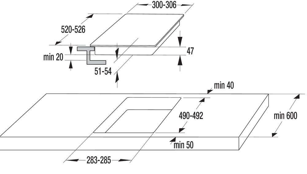 i Характер огранки фаски на внешней стороне варочной панели. Металлические рамки предотвращают забивание монтажных швов крошками и пылью.