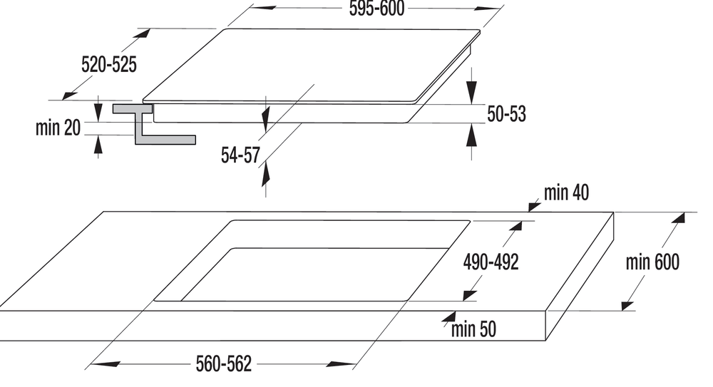 i Характер огранки фаски на внешней стороне варочной панели. Металлические рамки предотвращают забивание монтажных швов крошками и пылью.