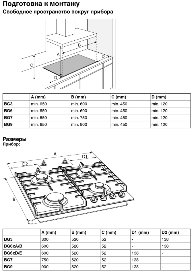 i Система безопасности в газовых плитах, варочных поверхностях и варочных центрах. Если пламя гаснет, подача газа прекращается автоматически.